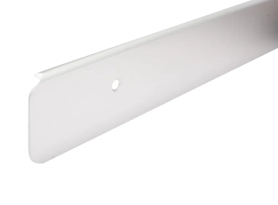 Планка изготовлена из аннодированного алюминия длиной 625мм, имеет скругления с обеих концов. Это позволяет обрезать лишний скругленный край и прикрепить планку на саморезы размером 3*16мм к торцу столешницы глубиной 600мм.