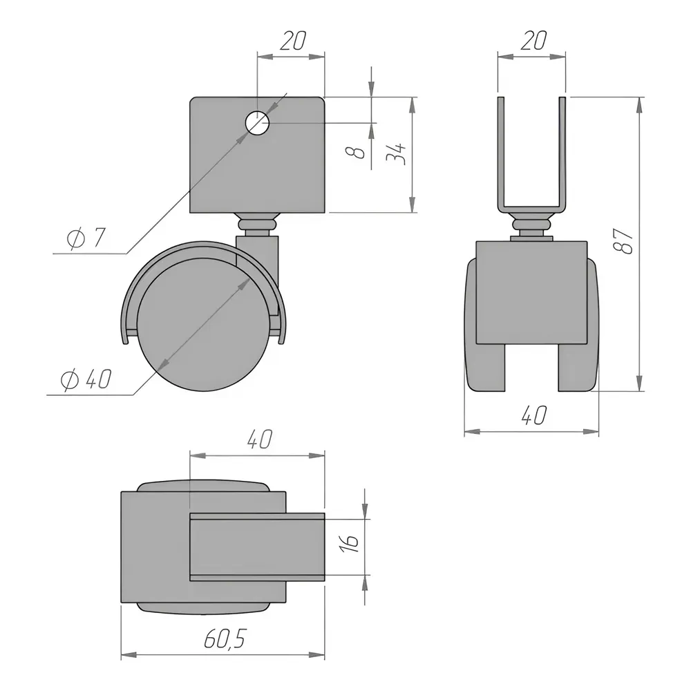 колесная опора с U-образной площадкой d=40