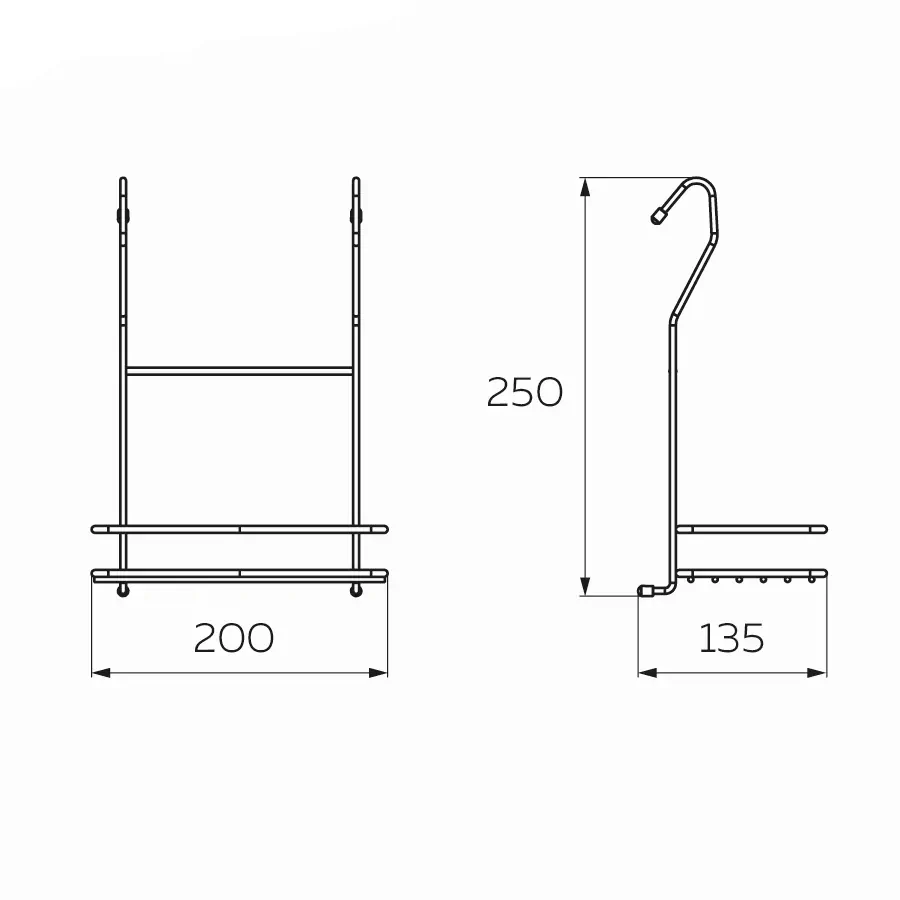 Размеры: ширина 200 мм, глубина 135 мм, высота 250 мм.