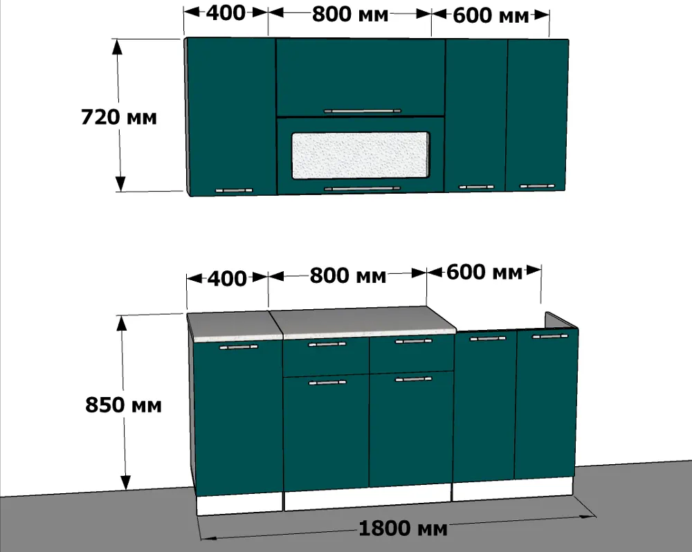 кухонный гарнитур Диана-4 1,8м софт (67 86 45 61 84с 41) изумрудное море
