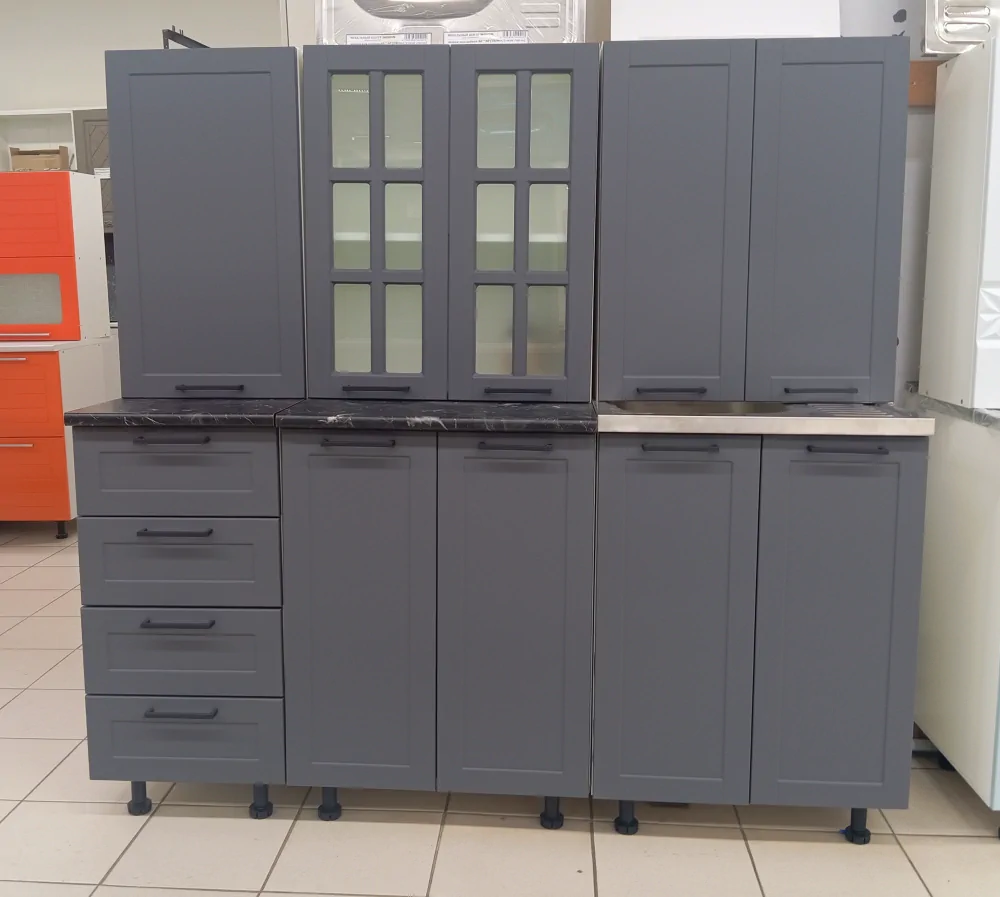 кухонный гарнитур Диана-4 1,6м софт (65 67 48 61 61с 41) лондон глянец (софт графит) ст кунгур 400+600