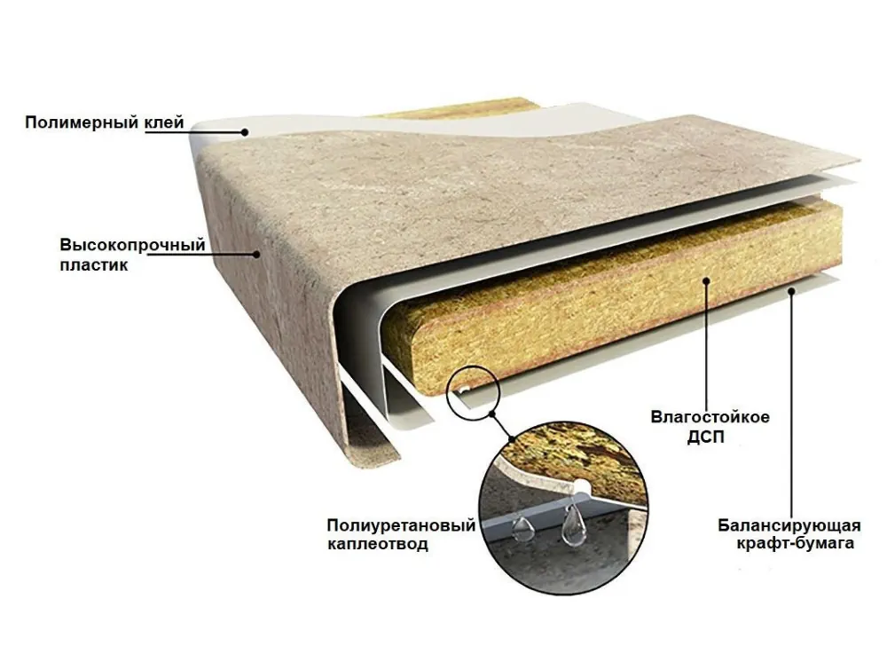надежная защита поверхности от влаги высококачественным герметизирующим слоем, столешница не разбухнет от контакта с водой