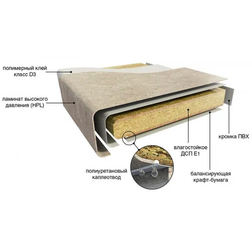 надежная защита поверхности от влаги высококачественным герметизирующим слоем, столешница не разбухнет от контакта с водой