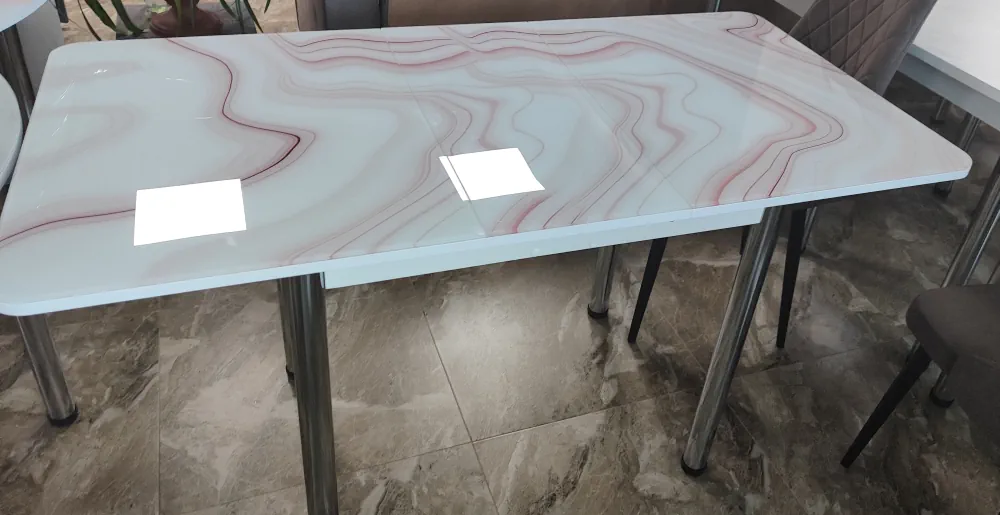 стол прямоугольный раздвижной (стекло + фотопечать) хром ноги (АБ-07)