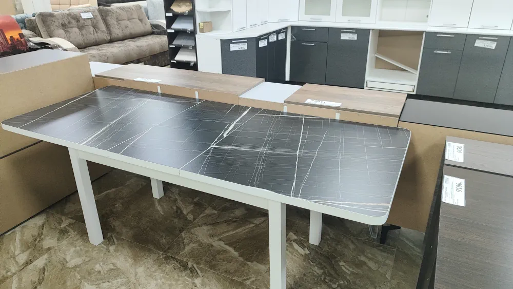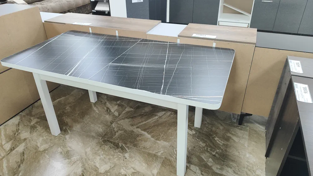 стол семейный прямоугольный 800*1600(2000мм) квадрат. белые ноги (черный тунис)
