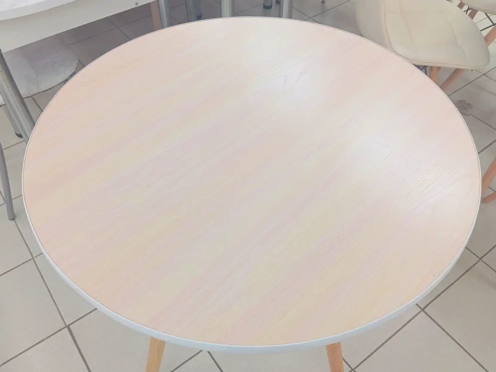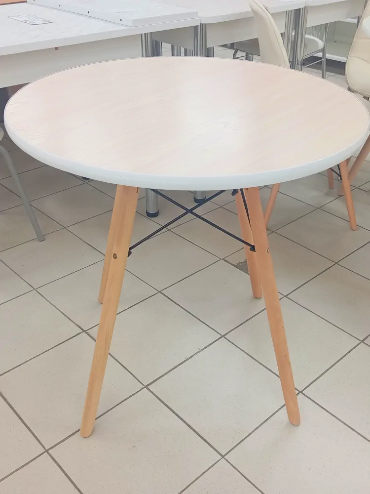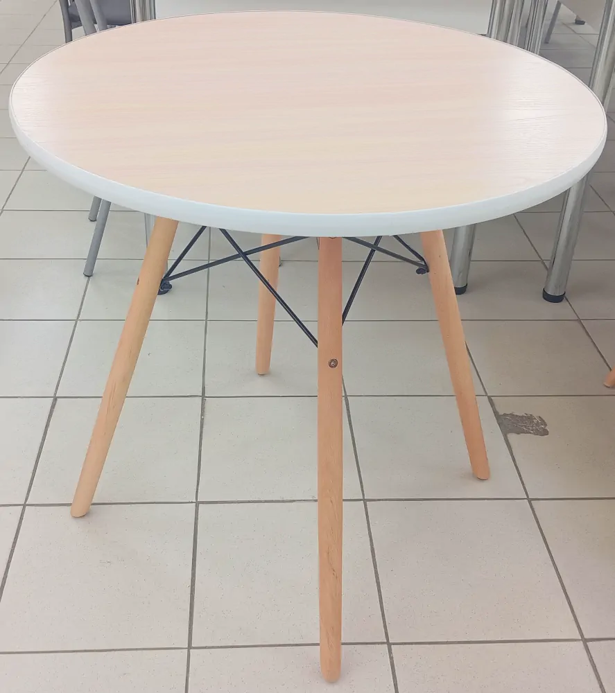 стол круглый (кант) ЛДСП 22 б/пласт дуб выбеленный подстолье Т-8М
